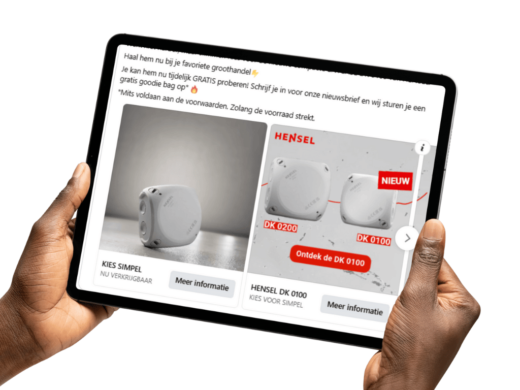 Opvallende content die technische producten vertaalt naar sterke visuals en duidelijke voordelen.